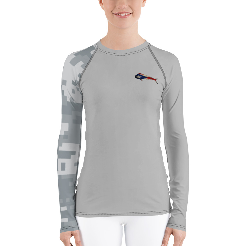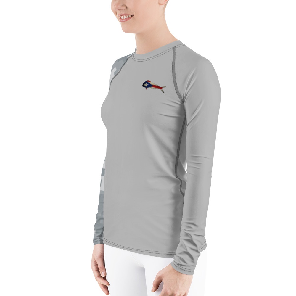 Camiseta para pescar de mujer con dorado y la bandera de Puerto Rico